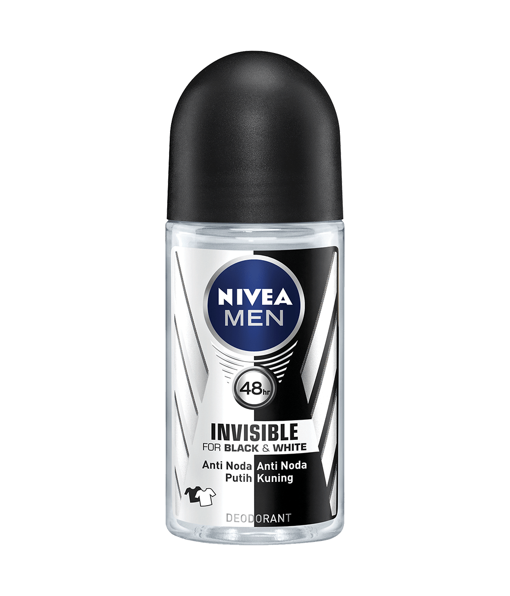 Lawan bau badan dengan NIVEA Men Black & White Invisible Deo. Formula Anti-Stain Technology memberi perlindungan 48 jam & cegah noda kuning pada baju putih dan noda putih pada baju hitam.